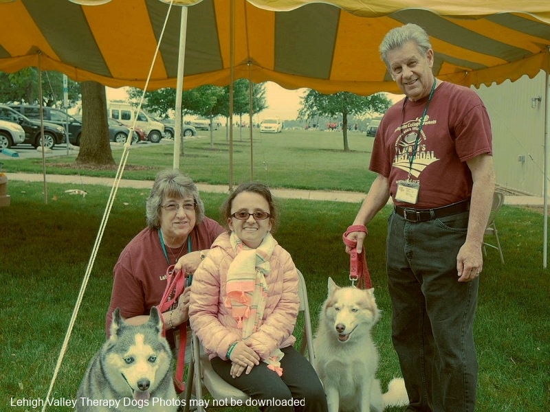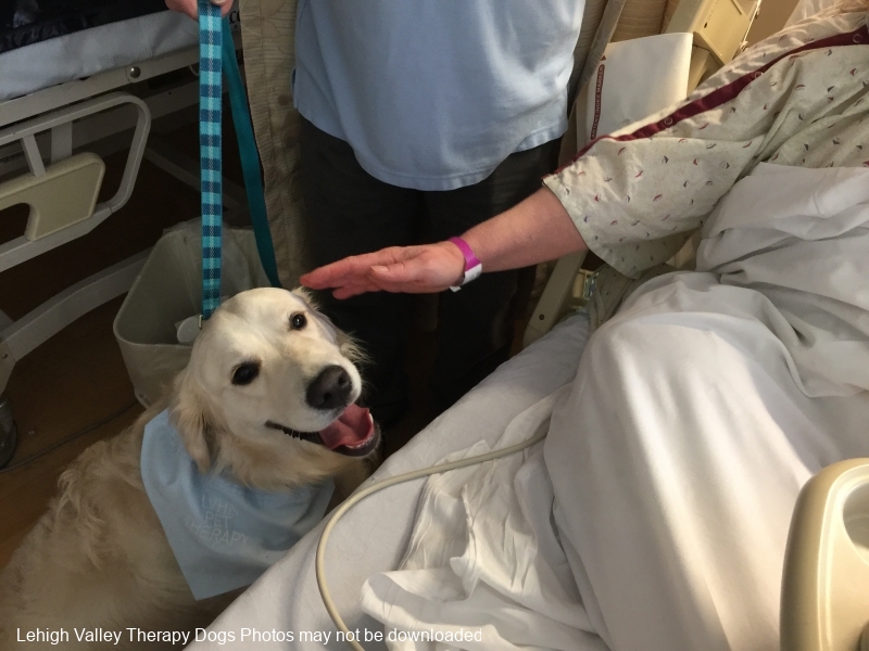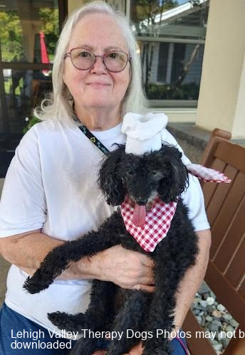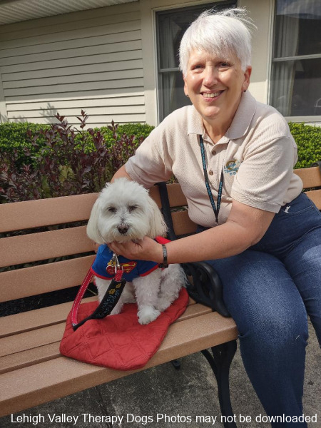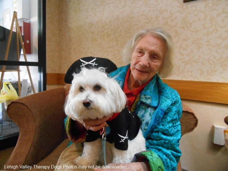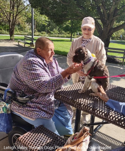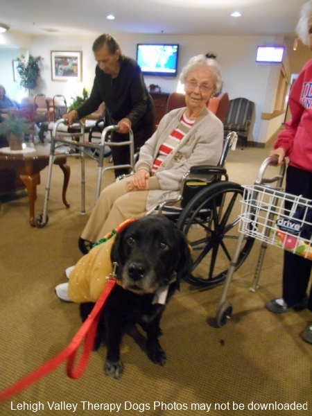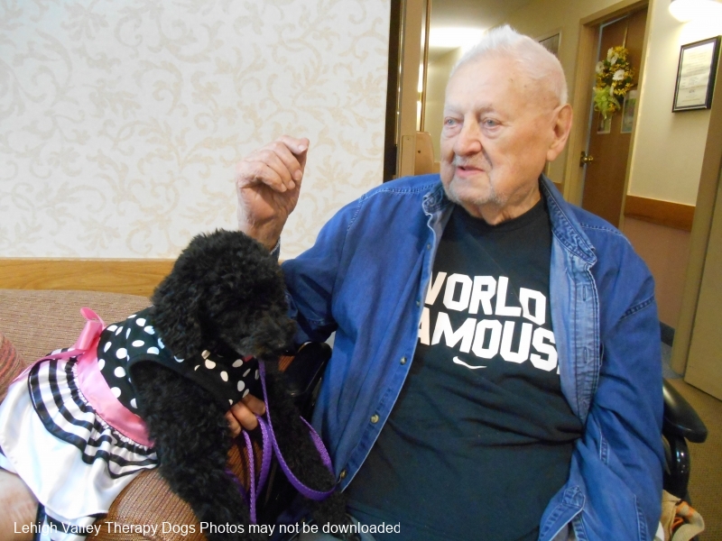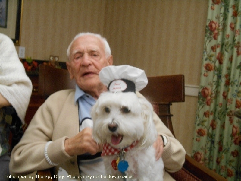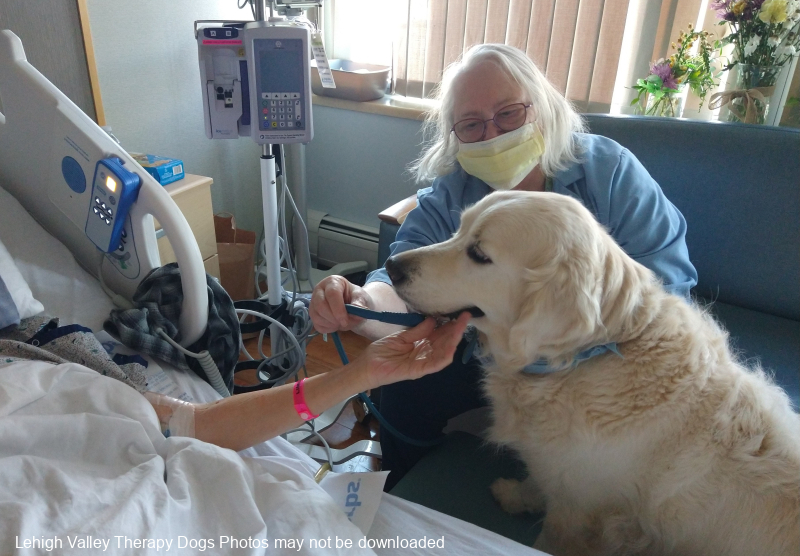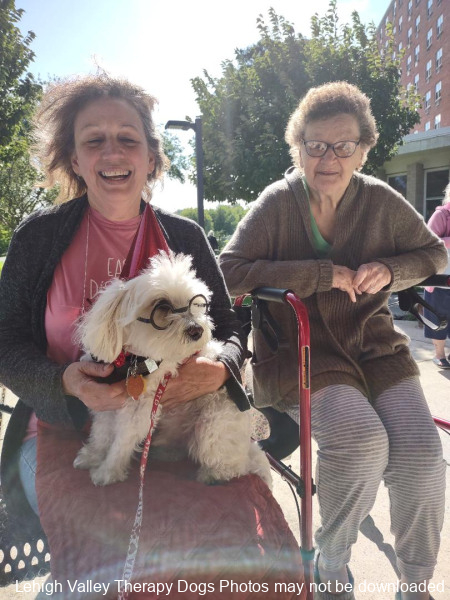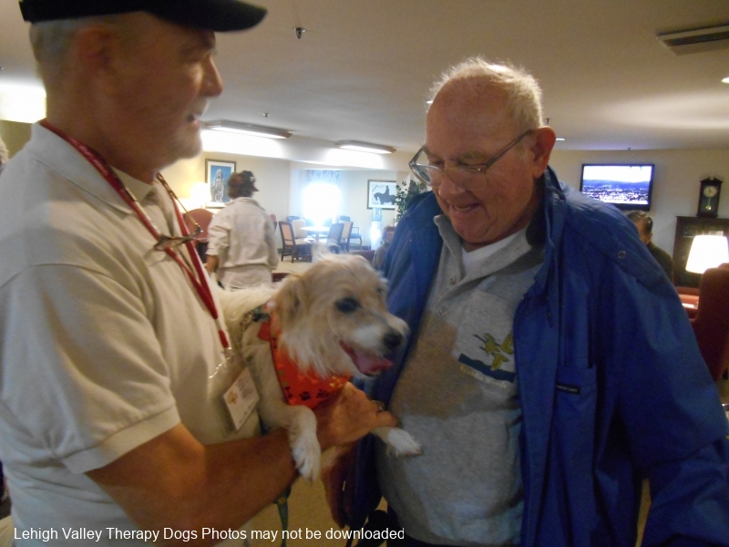 Lehigh Valley Therapy Dogs is a group of volunteers who share their certified/registered therapy dogs {which are their personal pets} with people in nursing homes, hospitals, schools and other institutions, in an effort to lift spirits. Each of our therapy dog teams have been tested and registered with Alliance of Therapy Dogs in Cheyenne Wyoming. Teams offer comfort and support to people experiencing stress, anxiety, sadness, loneliness, illness or other emotional challenges. Our members provide these visits at no cost to the individual or facility. Teams must do at least 1 visit each quarter to remain in good standing. A cold nose and soft fur are the perfect prescription for a smile. Sharing our dogs with the community brings joy and smiles not only to the individuals we visit but to the dog and handler as well.