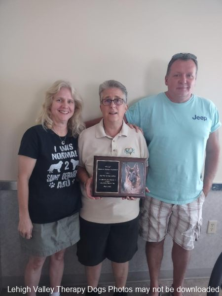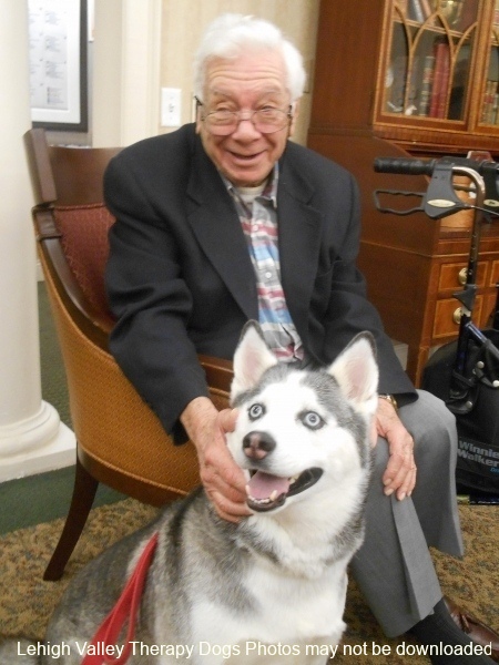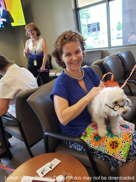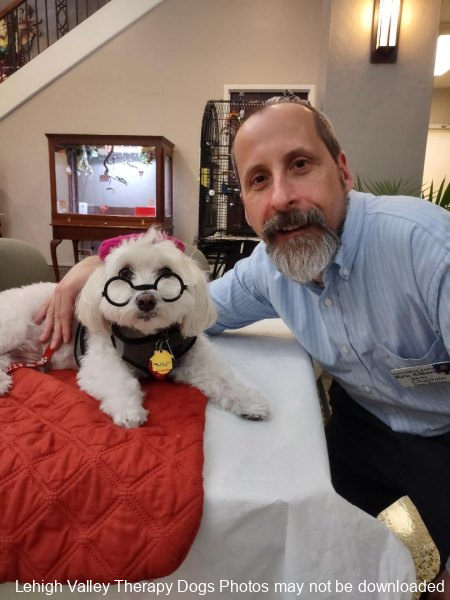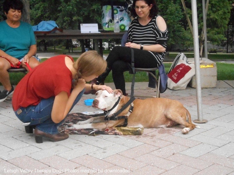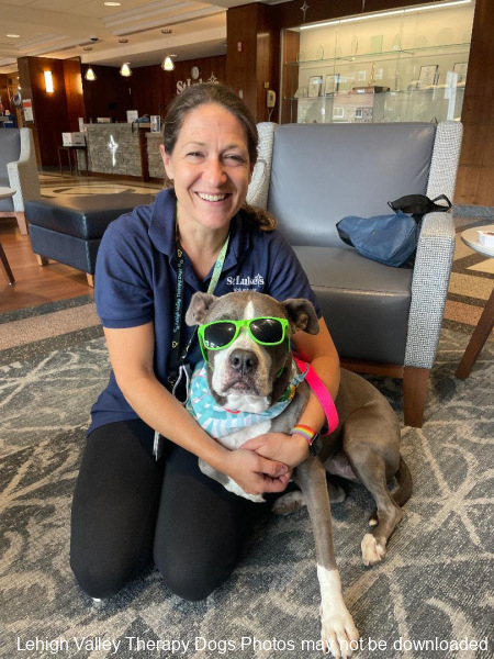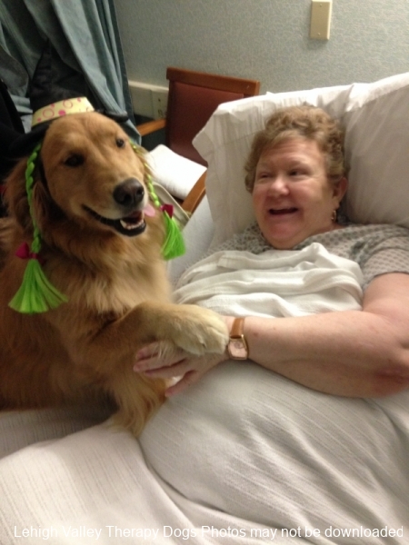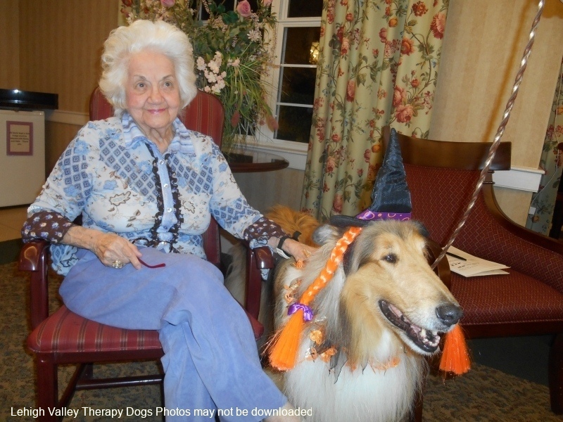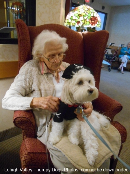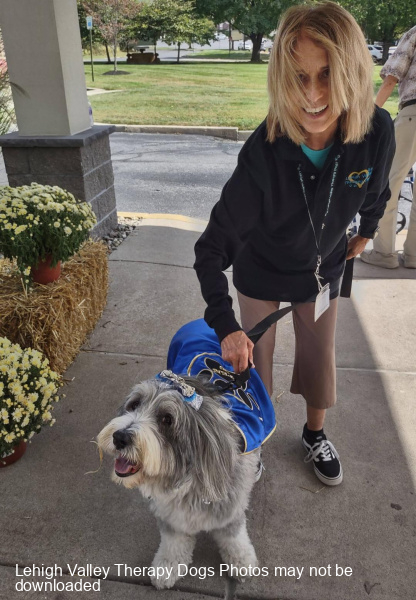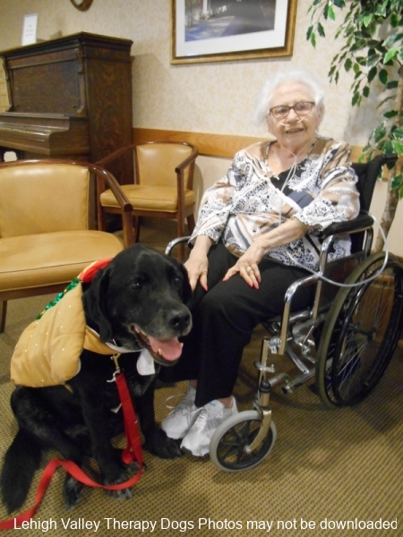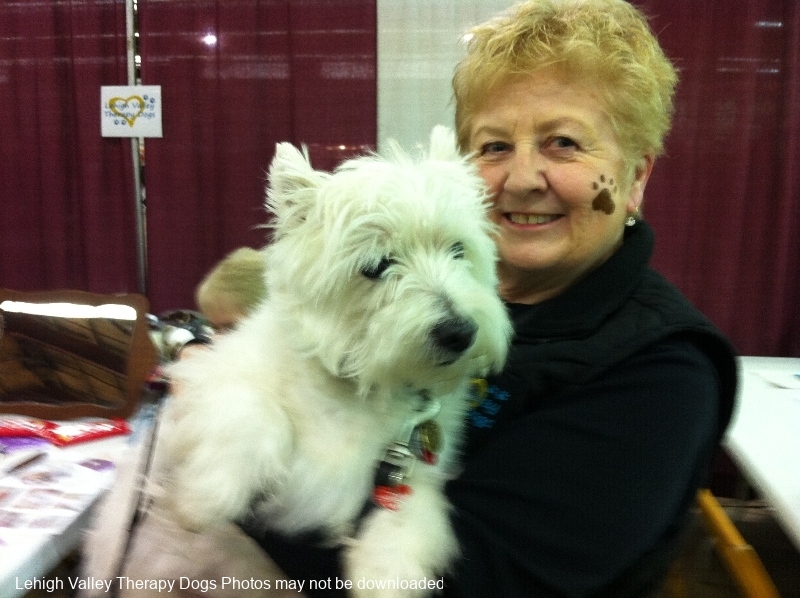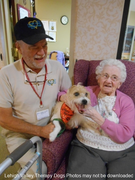 Lehigh Valley Therapy Dogs is a group of volunteers who share their certified/registered therapy dogs {which are their personal pets} with people in nursing homes, hospitals, schools and other institutions, in an effort to lift spirits. Each of our therapy dog teams have been tested and registered with Alliance of Therapy Dogs in Cheyenne Wyoming. Teams offer comfort and support to people experiencing stress, anxiety, sadness, loneliness, illness or other emotional challenges. Our members provide these visits at no cost to the individual or facility. Teams must do at least 1 visit each quarter to remain in good standing. A cold nose and soft fur are the perfect prescription for a smile. Sharing our dogs with the community brings joy and smiles not only to the individuals we visit but to the dog and handler as well.